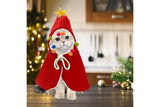 - Eye-catching Christmas cat cloak with colorful pompoms and a golden star for a festive touch.