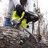 The 36V Chainsaw is part of RYOBI‘s HP series of tools that utilise advanced technologies, like brushless motors that deliver higher performance, extended battery runtimes and longer motor life. These tools are ideal for tough operating conditions and larger gardens with mature plants. They also have superior ergonomics for a premium user experience.