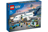 Premium-quality LEGO® City Passenger Aeroplane playset for ages 7+, with an apron bus, a pushback tug, catering truck, baggage truck and 9 minifigures