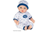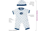 This 2-piece playdoll clothes fits most 40.6cm baby dolls come with a white jersey knit onesie that has a perfect starry pattern with blue trim and embroidered appliqué that says, “Once Upon A Star”. Top it off with the matching starry blue cap for a perfect nap or night-time slumber! The starry print onesie is made with high-quality materials and fabrics and is 100% Machine Washable, so after your little one’s fun play, wash it, lay it flat or hang it to dry, and ready to a batch of play again!