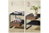 The black frame with the Columbian walnut wood pattern makes this coffee table simple