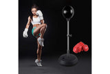 This Free-Standing Boxing Set comes pre-packaged with a punching ball on a sturdy stand, pair of boxing gloves, air pump and spanner. With easy assembly, this boxing set features a durable PU punching ball, sprung chrome bar, 12cm tension spring and a steel stand mounted on a sturdy base. Simply fill the base with sand or water for added stability and adjust the height between 121cm-145cm to get started.