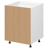 Kitchen Base Cabinet 3 Drawer 800mm Flat Pack - Natural Oak