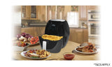 - ENJOY GUILT- FREE CRUNCH - Impressive technology & futuristic design with digital touch control, our fryer replaces hot oil with Ëœsuperheated air up to 200 degrees Celsius circulating to produce the same crunchy browned taste and texture. It uses advanced Ëœturbo air technology, mimicking what oil does to food when frying. It's quicker, healthier, and a whole lot easier.