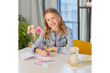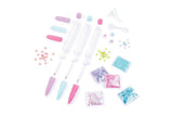 Create 3 Floaty Pens and be mesmerized as the glitter, charms, and icons float around in the pen. Includes a funnel, 3 pen bodies, caps, glitter, and shaped icons – enough to fill each pen more than once! Stand them up in the PlayTray for a mess free, sturdy way to load the contents and seal them up.