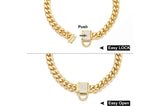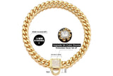 14mm Gold Heavy Duty Safe Comfortable Stainless Steel Zirconia Stones Dog Collar