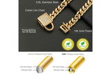 The material of This Dog Collar: Pure 18K gold over the 316L stainless steel chain and gold is 20X thicker than other regular plated chains. High strength and hardness, heavy, durable, no rust, no tarnished for years of use