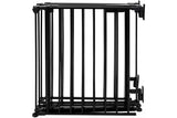 The gate has a safety lock feature and has a door that opens both ways as needed. To operate the door, the handle must be touched from above where it remains out of reach of infants and pets.