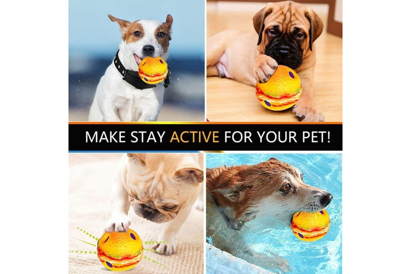 Safe ; Durable: The shape of the burger makes dogs more interested in it. Made of indestructible eco-friendly vinyl. It will not damage the dog’s teeth and health.