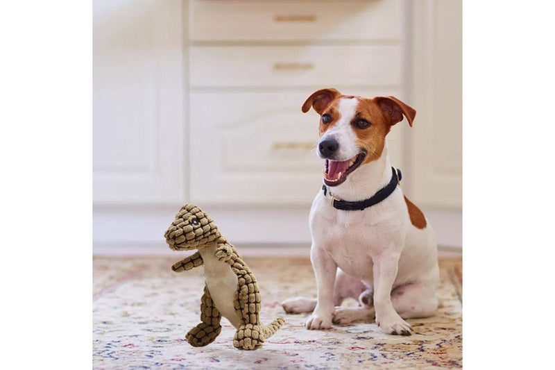 Fluffy Dinosaur Squeaky Toy for Dogs Pet Dog Sound Chew Toy Brown
