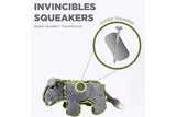 Super dense stuffing & fused nylon rip-stop backing. Machine washable. Invincible squakears keeps squeakin if punctured.