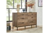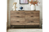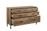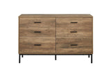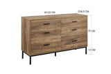 Crafted from a high-quality E1 board with a melamine finish, it features sturdy metal knobs and legs that add a modern touch to its rustic charm. Six spacious drawers provide generous storage for all your essentials, while the anti-falling strip ensures safety and stability.