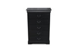 Louis 5-Drawer Hevea Wood Chest With Led Lighting (Black)