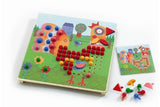 Place the coloured pegs into the holes to create fun pictures. Contains a wooden board, 8 picture cards and 170 coloured pegs.