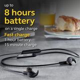 - Power to last the day. Up to 8 hours battery for a day™s worth of calls and music