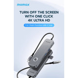 Momax USB-C 7 in 1 100W Power Delivery Hub - Spacy Grey Support 100W PD3.0 Fast Charing, USB3.2 Gen1 High-speed transmission,1x USB-C , 2x USB-A, 1x (4K 60Hz)HDMI, 1x SD slot, 1x TF card slot