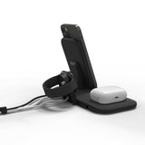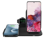 Mophie 15W Wireless Charging Stand - Black, Charge up to Three Devices Simultaneously (2 by Wireless charging + 1 USB Wired charging) Includes Apple Watch Charging Stand and Wall Adapter, USB-A Port
