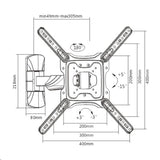 Brateck Lumi LPA50-441 23-55" Full Motion TV Wall Mount. Tilt +5 -15 , Swivel +90 -90 . Built-in level adjustment. Integrated cable management. Profile 49-305mm. Max VESA 400x400mm.