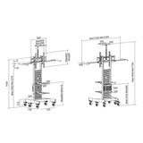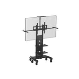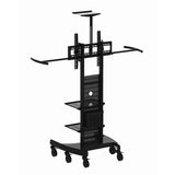 Koford SAV108C Cart Trolley With Side Handles, 32-65" TV Mobile VESA 600x400mm, Load Capacity 60kg, 2 Adjustable component Shelves, 1x Camera Shelf , 1x Rear Storage Box,