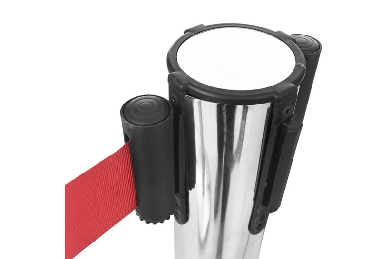 Stanchions With Belts 4 Pcs Airport Barrier Stainless Steel Silver Oakpil