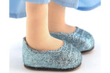 The girlfriends are having a party, which is why Billy is so dressed up. She chose a blue satin dress that magically emphasizes the colour of her funky coloured hair. Fluffy skirt made of satin and airy tulle, bodice with shiny lurex and an elegant bow in the colour of the dress. Shiny blue shoes complete the look. Billy spins and sparkles like a real fairy!”.