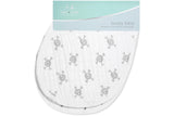 Our Boutique burpy bibs are made with 4 layers of highly absorbent muslin, 25% more fabric, and a higher thread count for an extra luxurious finish. Our patented design lets you snap around them as a full coverage bib, or drape over your shoulder for a no-slip burp cloth.