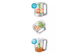 You can easily prepare healthy homemade baby food with the Avent Combined Steamer and Blender: first steam fruit, vegetables, fish or meat and then simply lift and flip the jar over to blend it, with no transfer of food required!