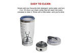 Made from sturdy stainless steel and durable acrylic, this shaker can stand up under even the most rugged conditions. It's easy to clean, too—a huge benefit if you're camping or hiking. Simply add your favourite dish detergent, some water, and turn it on. It'll churn up a foam vortex that will reach into every crevasse to clean it. Rinse with a little water—and you're done.