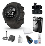 Garmin Instinct 2S Standard Edition Smart Watch Graphite + Wireless Headphones + Watch Charging Stand + USB Car/Wall Adapter + 6Ave Cleaning Kit + Workout Towel (010-02563-10)