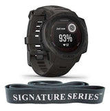 Garmin Instinct Solar Rugged Outdoor Smartwatch, Health Monitoring and Signature Series Stretch Band