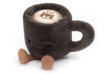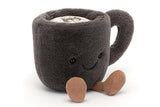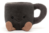 Amuseable Coffee Cup is a classic blend of rich textures and delicious colours, with notes of quirky charm! This charcoal cup perks up any desk, filled with a suedette ombre latte. With corduroy boots, a cheery smile and a Jellycat stencil embroidered on top, this cup is full of beans!