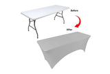 Installing the tablecloth is a breeze. Simply tuck the table legs into the four small elasticated pockets. In just 30 seconds, you can have a tidy table top ready for any occasion.