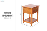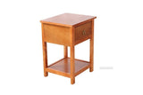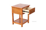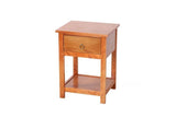 Features: Classic style in solid Pine wood construction with partially engineered wood 1 Drawer with sliding steel runners A lower shelf Brass coloured metal ring handle Caramel colour