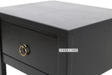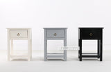 METRO bedside table is made of solid pine wood construction with partially engineered wood. The bedside comes with a top drawer (sliding on quality steel runners, a lower shelf, and a metal ring handle).