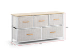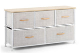 The five spacious slide-out drawers effortlessly store everything from clothes, undergarments and accessories to paperwork, cables and office supplies to help keep your home free of clutter.