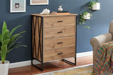 Welcome rustic warmth to your home with the Ovela Newtown Chest of Drawers (Rustic Oak) that boasts wooden drawers with ample storage space and a unique, modern-look lattice steel frame.