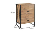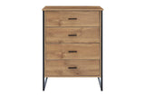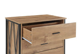 Beautifully pairing rustic looking oak veneer and a unique, black matte steel lattice frame, this chest of drawers boasts a contemporary aesthetic that will modernise and invigorate your decor.