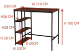 Rectangular Bar Table with Three Shelves - Rustic Brown