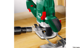 The Bosch electronic speed control with setting wheel and accelerator switch enables the material to be cut with exceptional precision, while the integrated spindle lock allows for quick and easy changing of the router bits.