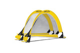 The portable SKLZ Playmaker Soccer Goal Set is ideal for pick-up games and practice with younger soccer stars. For older players, the goal set can be used as target or goal for both practice and friendly matches. Easy twist close design for quick breakdown and storage make these nets ideal for taking with you to practice or a park. Measuring 2.5 feet across when assembled, the nets fold down to a compact size for storage and transport. This pair of durable goals feature attached spikes that securely anchor into the ground and a carrying case so you and your friends can truly start a match wherever you go.