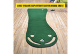 Practice your stroke on the kidney-shaped putting green. The green gives you three cups to aim at, giving you plenty of practice targets, while the built-in sand traps are designed to catch any missed shots. In addition, this green offers a high-quality putting surface designed to stay smooth over time.