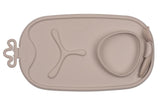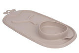 Built-in curved edge bowl supports weaning and independent feeding. Suitably sized for wet foods such as yoghurt, pureed vegetables and soups, the soft silicone edges are the perfect partner for the included deep scooped spoon – soft enough to help collect food or wipe away any access. And the three-section divider keeps foods separate for learners and fussy eaters alike.