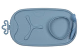 Built-in curved edge bowl supports weaning and independent feeding. Suitably sized for wet foods such as yoghurt, pureed vegetables and soups, the soft silicone edges are the perfect partner for the included deep scooped spoon – soft enough to help collect food or wipe away any access. And the three-section divider keeps foods separate for learners and fussy eaters alike.