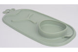 Built-in curved edge bowl supports weaning and independent feeding. Suitably sized for wet foods such as yoghurt, pureed vegetables and soups, the soft silicone edges are the perfect partner for the included deep scooped spoon – soft enough to help collect food or wipe away any access. And the three-section divider keeps foods separate for learners and fussy eaters alike.