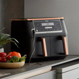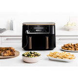 DualZone Technology allows you to choose between the Smart Finish feature, which unlocks cooking 2 foods 2 ways that finish at the same time and the Match Cook feature, which easily copies settings across zones for full 9.5 litre capacity meals.