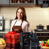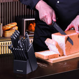 RAXCO Black 17PCS Kitchen Knife Set with Block & Sharpner, 8 Chef Knives & 6 Steak Knives for Slicing Cutting
