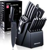 RAXCO Knife Set,Kitchen Knife Set With Block Knife Sets Dishwasher Safe, Black 17-in-1