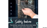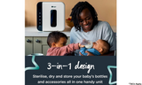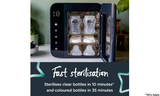 Steam and water-free: 3 different functions allow you to dry, sterilise or dry and sterilise in one by using a UV light that a safe and dry method of sterilising. Also acts as hygienic storage.
