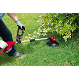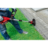 A 90° rotating head allows quick change from grass trimming to edger. The telescopic shaft can be adjusted to suit the height of the operator for improved ergonomics.