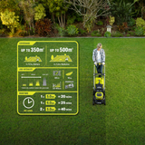 The included Battery powers the Lawn Mower and more than 200 tools from the RYOBI ONE+ range. With RYOBI’s IntelliCell™ technology, the battery cells are monitored and balanced for longer life and additional safety.